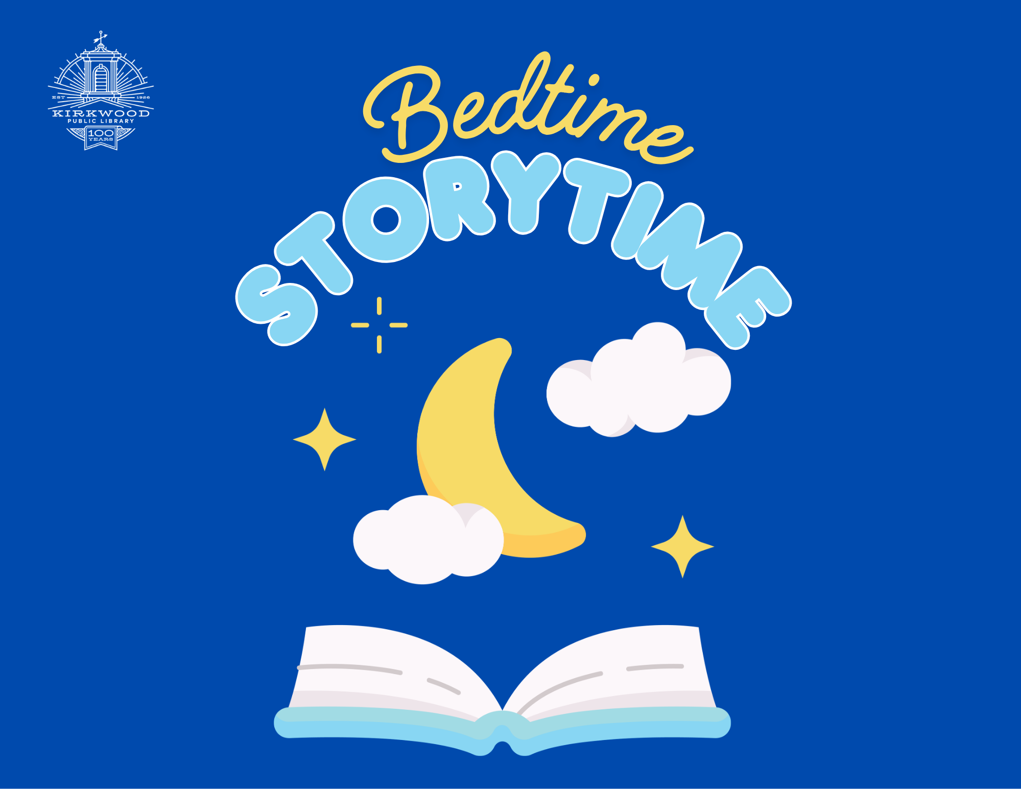 Monday, July 27, 2026. Time: 7:00 pm Ages 0-12 years Join us for calm and relaxing Bedtime Storytime at the library! Wear your PJs if you want. Photos and videos may be taken during this program to highlight library events and share our library's story. By participating, you consent to...